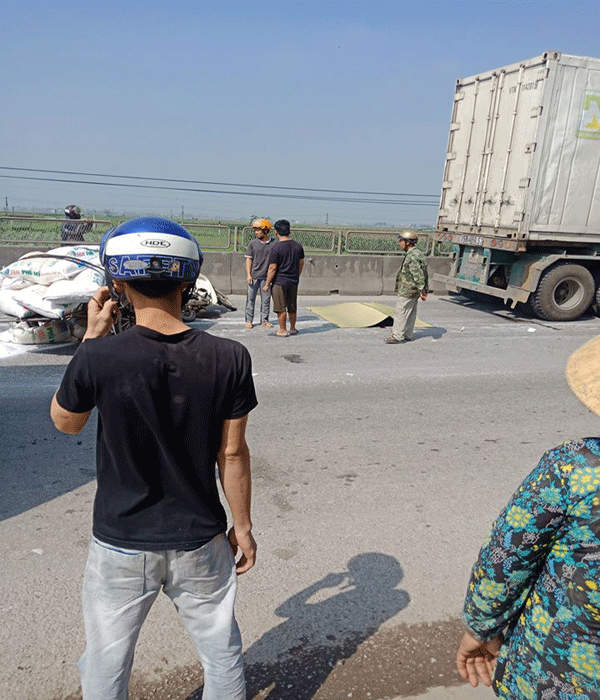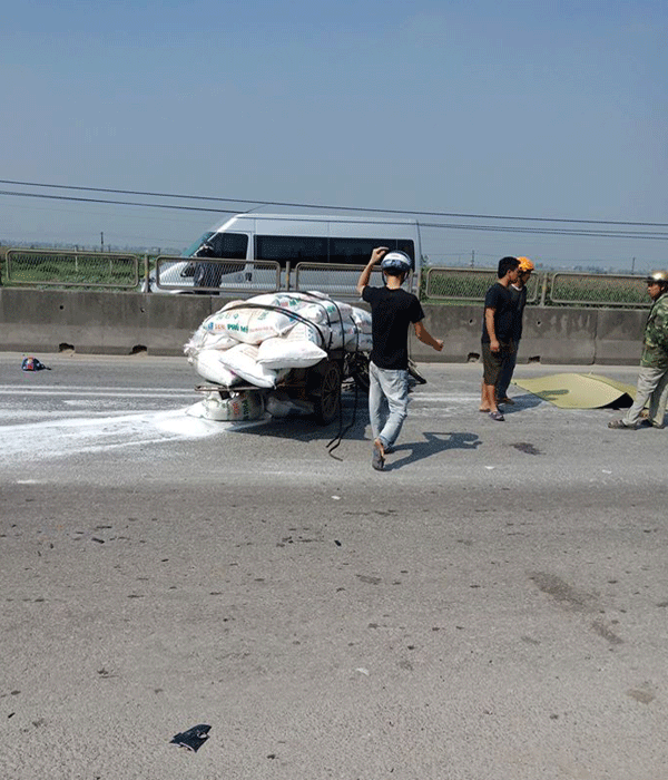 Tại hiện trường những bao đạm tung tóe. Được biết, người ch.ết có 2 con nhỏ, làm nghề chở xe kéo kiếm sống.