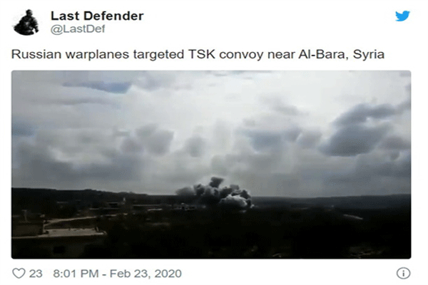 Cụ thể, sau khi phát hiện một đoàn xe quân sự có xe bọc thép hộ tống xuất hiện ở khu định cư Al-Bara, hai máy bay ném bom của Không quân Nga đã giáng một đòn mạnh vào lực lượng vũ trang Thổ Nhĩ Kỳ.