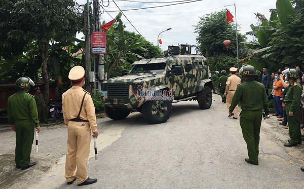 Lực lượng Công an, Viện Kiểm sát tỉnh và nhiều cơ quan chức năng khác đã đến phong tỏa hiện trường. Xe chuyên dụng có trang bị vũ khi được huy động đến hiện trường.
