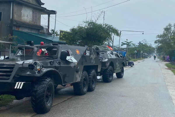 Lực lượng quân đội điều phương tiện chuyên dụng vào hiện trường ứng cứu