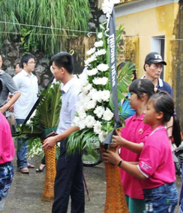 Di ảnh 3 cháu Nguyễn Đức Tiến (SN 2002), Nguyễn Đông Vũ (SN 2005), Nguyễn Tiến Minh (SN 2007) ngập trong những bó hoa trắng.