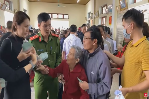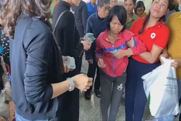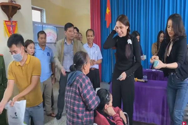Ban đầu, Thủy Tiên yêu cầu người dân xếp hàng để nhận tiền như mọi khi, nhưng cô nhanh chóng nhận ra điểm khác thường ở xã Thạch Hóa là quá nhiều người già cả, khó khăn trong đi lại.