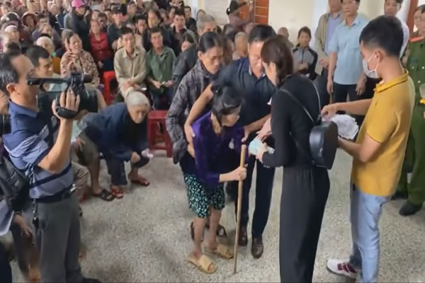 Thủy Tiên thấy vậy liền hỏi thăm và được biết, vì không được phép cho người khác nhận thay nên hàng xóm phải bế cụ lên tận nơi để nhận tiền.