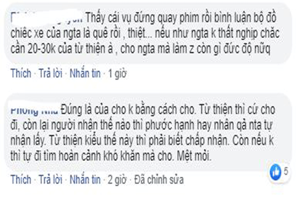 Nhiều người phản đối việc quay video lại những người xin gạo rồi bình phẩm.
