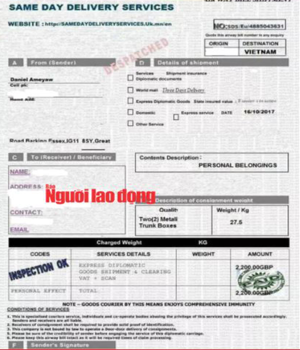 Bà L. nhận được thông tin từ một số đối tượng xưng là hải quan và yêu cầu bà phải đóng phí, thuế nếu muốn nhận quà.