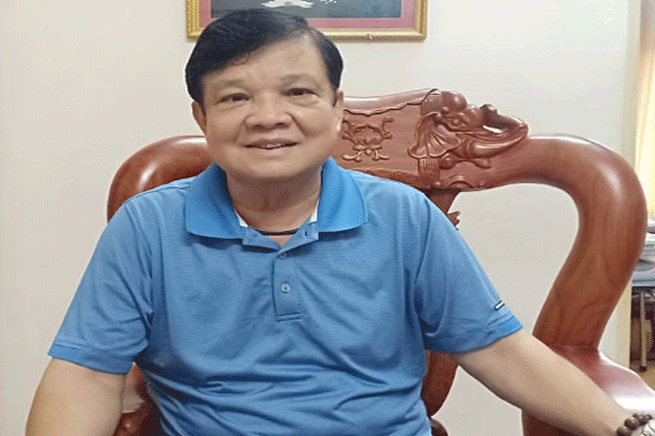Ông Hà Quang Năng trả lời phỏng vấn về cuốn từ điển chính tả gây tranh cãi. Ảnh: Báo Người Lao động