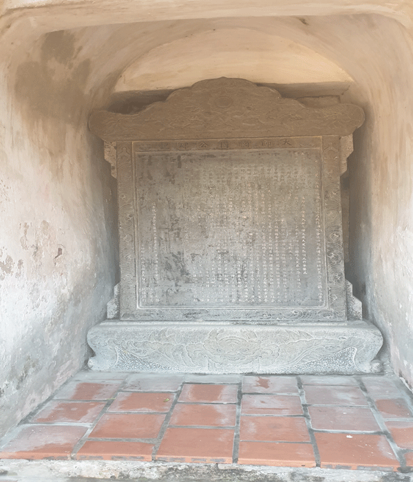 Bia đá bằng chữ Hán ghi công trạng của Ngài.