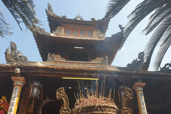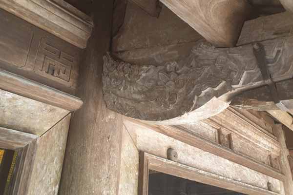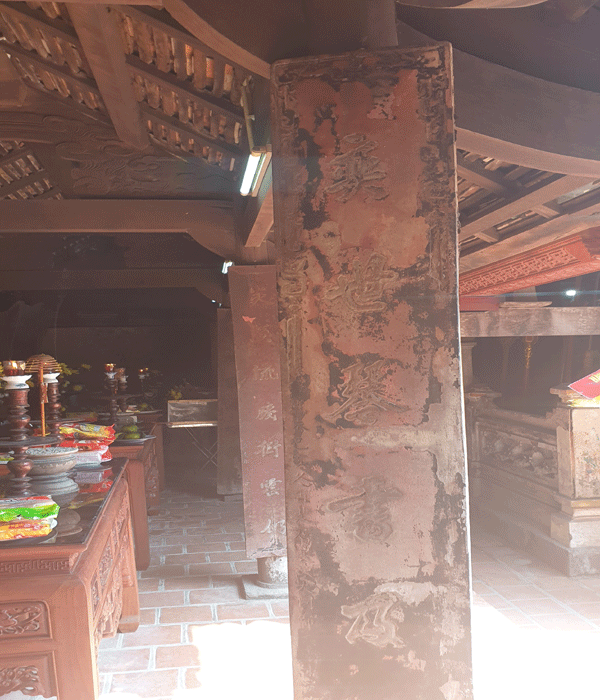 “Sông núi trời sao ngàn năm khí cả/ Cha con, anh em vạn thuở anh hào. Phía trong cùng là nhà Thượng điện, nơi lưu giữ nhiều hiện vật quý giá: sắc phong, văn bia, phả tộc. Nhà có 3 gian, gian giữa thờ Thái Bảo Đình Quận Công Nguyễn Hội và Quận phu nhân Vũ Thị Hạch (cha mẹ Ngài).