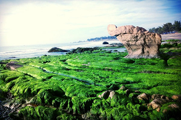 Biển Cổ Thạch (Tuy Phong, Bình Thuận) nổi tiếng với những cảnh quan siêu lạ với các bãi đá hình thù khó có thể tìm thấy ở đâu khác khiến bao du khách ngẩn ngơ. Nơi đây lúc nào cũng đẹp, nhưng đẹp nhất là khoảng thời gian từ cuối tháng 12 đến tháng 2 năm sau khi biển Cổ Thạch khoác lên mình “chiếc áo mới” màu rêu đẹp lạ thường thu hút nhiều du khách đến tham quan và “săn” rêu.