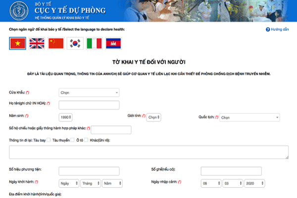 Mẫu tờ khai y tế bắt buộc đối với mọi hành khách nhập cảnh vào Việt nam kể từ ngày 7/3/2020