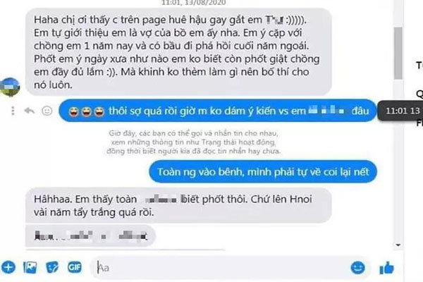 Bên cạnh đó, cộng đồng mạng cũng nhanh chóng tìm ra bức ảnh ghi lại cuộc hội thoại của chị vợ và một người bạn trên Facebook, trong đó chị cũng đã thừa nhận A.T đã cặp kè với chồng mình và từng phá thai.