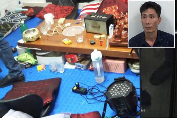 Nguyễn Xuân Quý cùng căn phòng. Ảnh do công an cung cấp.
