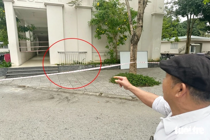 Khoảng cách tấm lan can này rơi từ trên tầng 4 xuống mặt đất khoảng hơn 15m.