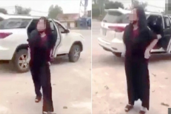Khi bà M. xuống xe ra về thì chiếc xe chở bà này đậu chắn lối ra vào cổng đền. Nhân viên làm việc tại đây liền đến nhắc nhở xe di chuyển thì bị nhóm người ngồi trên ô tô chửi bới. Bà M. sau đó đã xuống xe, tụt quần và chửi bới nhân viên làm việc ngay trước cổng đền Cuông.