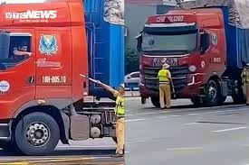 Trước đó, mạng xã hội lan truyền clip khoảng 30s, ghi lại hình ảnh 2 CSGT đang làm nhiệm vụ trên đường. Trong đó, 1 cán bộ đứng trước đầu xe tải BKS 18H-005.10 và ra hiệu dừng phương tiện.