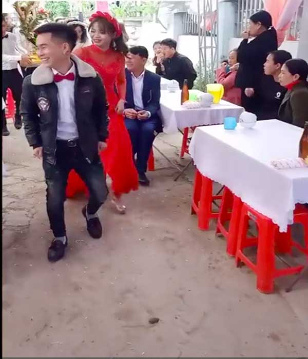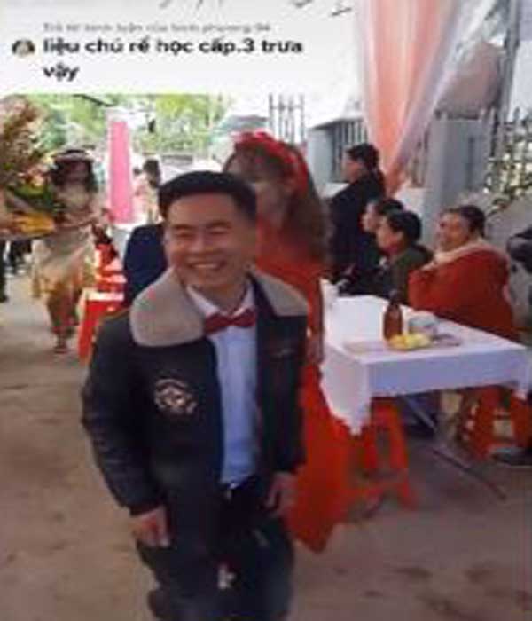 Thông tin trên lập tức thu hút sự chú ý từ cộng đồng mạng. Xem đoạn clip có thể thấy chú rể không mặc bộ comple như thông thường mà mặc quần jeans và chiếc áo khoác lót lông trẻ trung, sánh bước bên cô dâu thì chiều cao cũng không chênh lệch nhiều. Tuy nhiên việc chú rể chỉ mới 15 tuổi vẫn khiến nhiều người bán tín bán nghi, chờ đợi người trong cuộc lên tiếng.